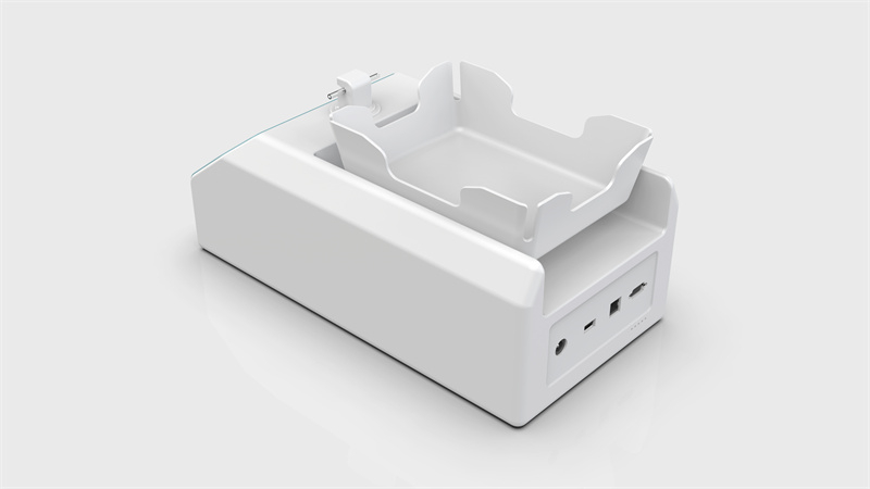 白藍配色方案既符合醫療環境要求,也體現出專業設備的嚴謹性。人體工學底座設計確保設備放置穩定,圓形邊角處理避免意外碰撞傷害。